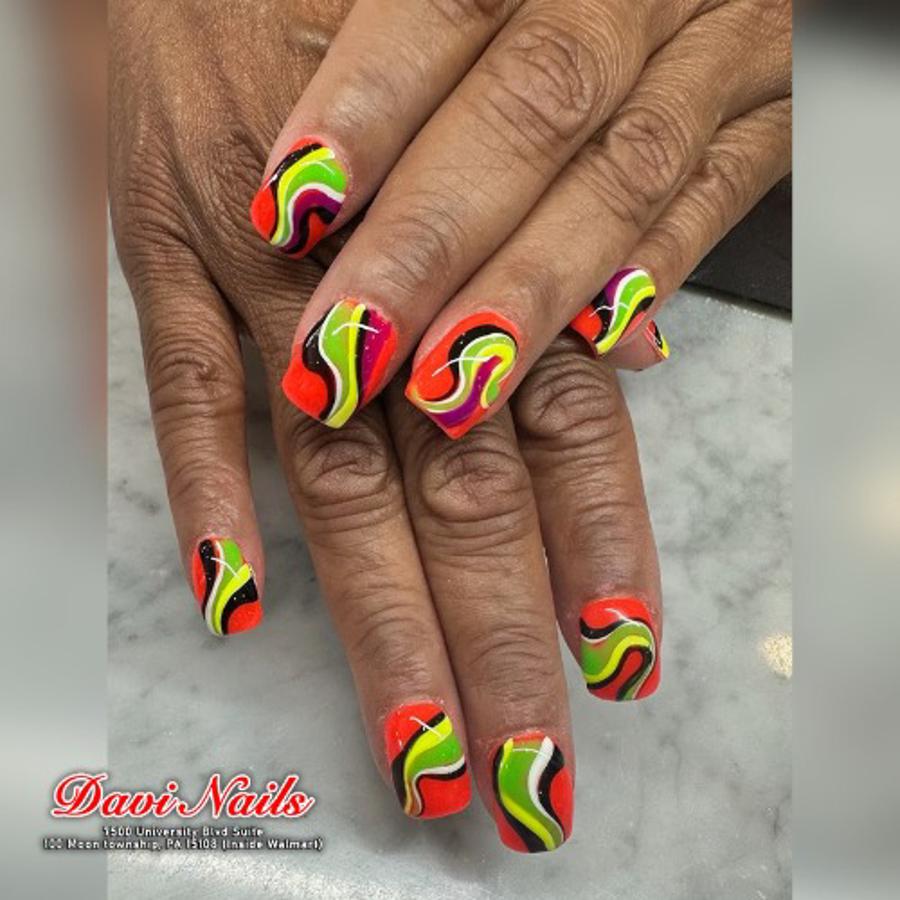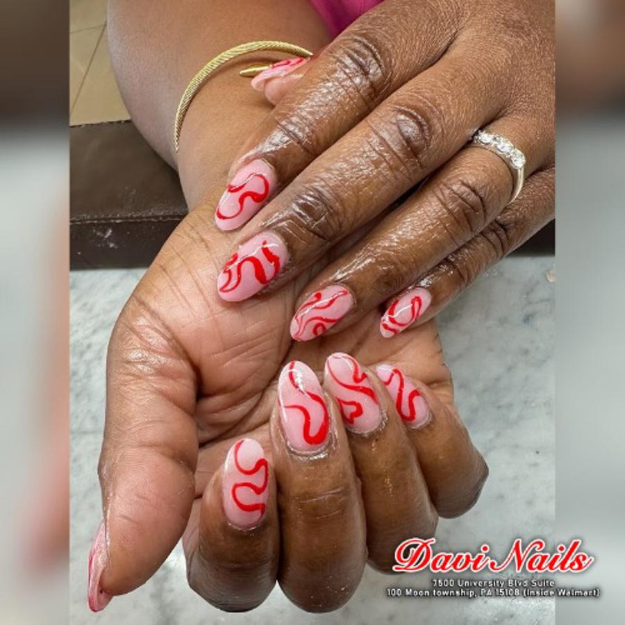 Davi Nails is a fun, vibrant enthusiastic nail salon located in Moon Township, Pennsylvania, zip code 15108. Whether you need a repair or a whole new style, our technicians will give you a look that not only makes you feel great about your nails but also will get the attention of others. All of our clients whether new or old get the same, attention to detail service that we have come to be known for.